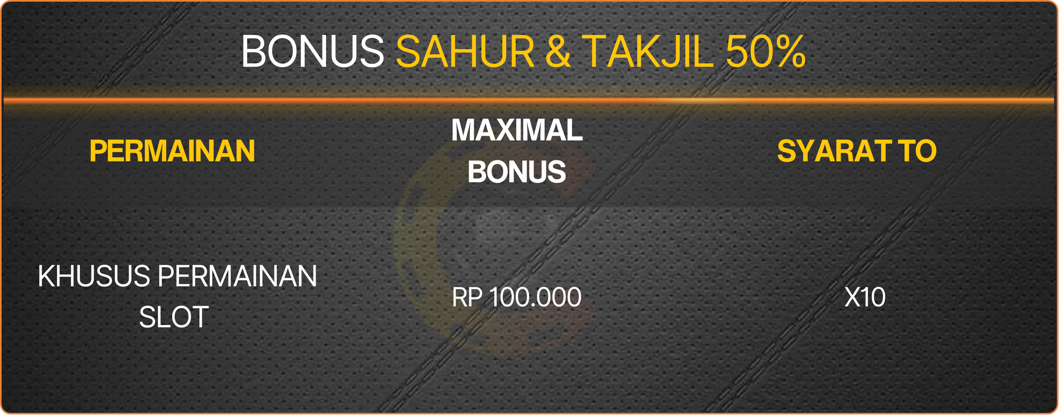 - 50% hanya berlaku untuk kemenangan bersih (tidak termasuk taruhan).